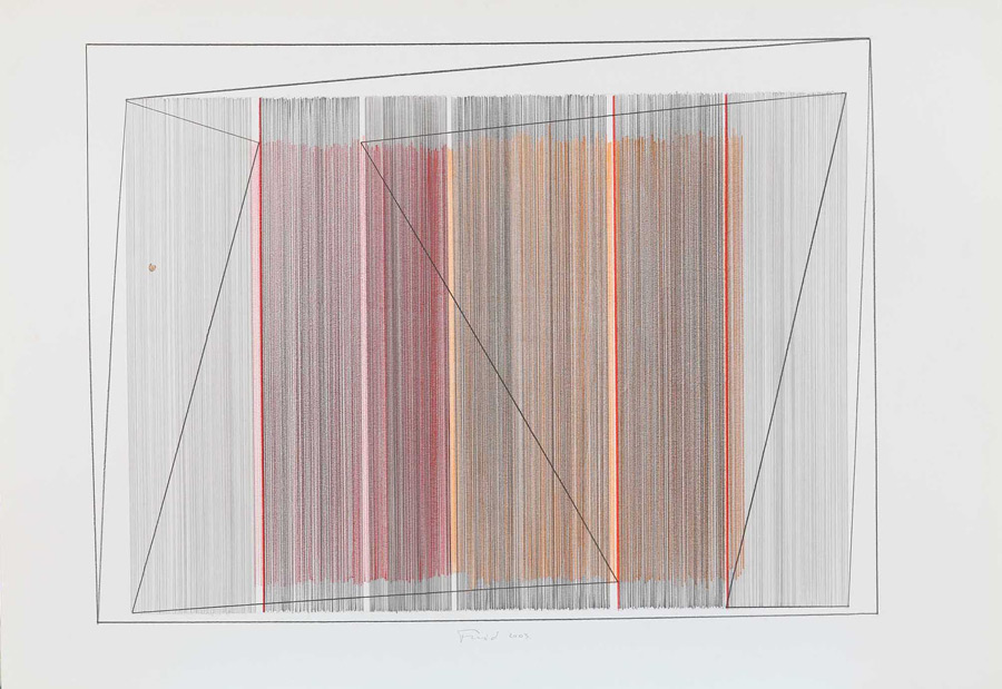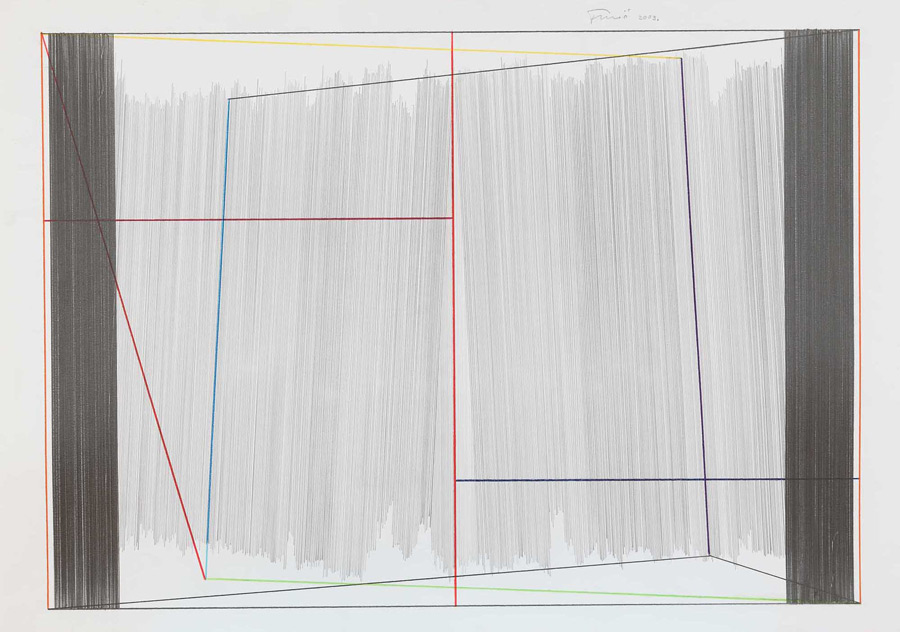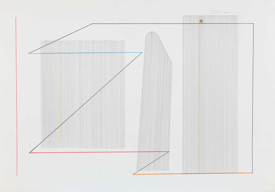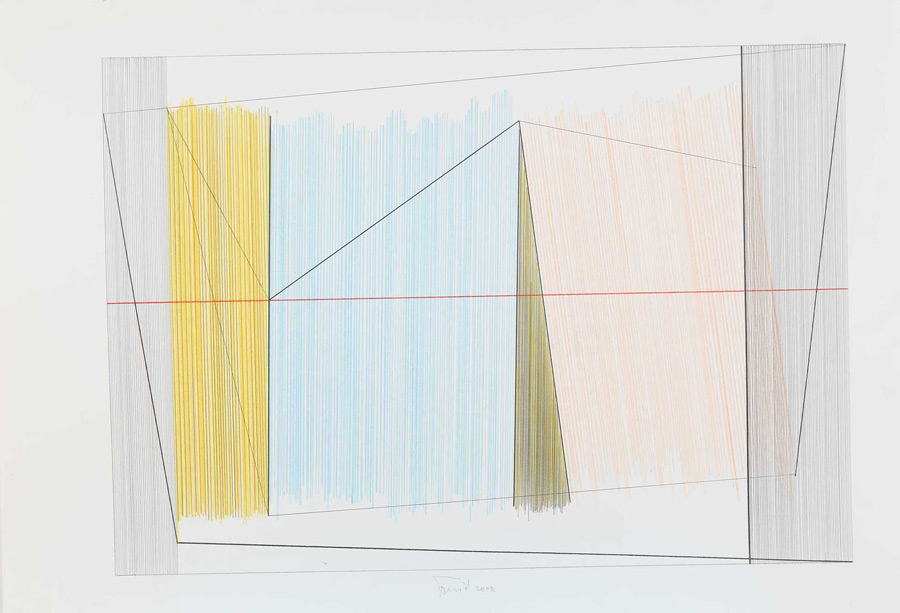 Sve te stilske crte radova izvedenih kistom na platnu možemo prepoznati i za ovu prigodu odabranoj seriji od trideset crteža većeg formata, ostvarenih olovkama u boji na papirnoj podlozi. U neformalnom razgovoru, umjetnik će ove vrlo dopadljive, ali precizionističke radove, opisati kao bliske srodnike ne samo istoimenog slikarskog ciklusa “Traseri prostora” (2003.g.) nego i recentnih skulptorskih ostvarenja poput “Grad blistav sred jutarnjih poljubaca” (2001./02. g.).